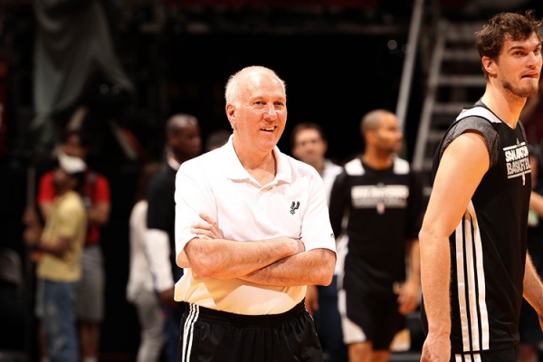 今年格外不易的是,馬刺在季初面對幾支聯盟的頂級強隊一勝難求,同時在一月又陷入了嚴重的傷病潮,幾位輪替主力包括Manu Ginobili、Kawhi Leonard、Danny Green、Tiago Splitter等先後都缺席接近一個月,而隊上主控Tony Parker則是自從暑假勇奪歐錦賽冠軍之後,開季狀態就不若往年。而馬刺能夠撐過這段傷兵潮,並且在客場九連戰結束,傷兵陸續歸隊之後,三月開始打出一波19連勝,並且最終以聯盟第一的戰績,取得季後賽所有的主場優勢,Popovich所建立的成熟攻守體系居功厥偉。